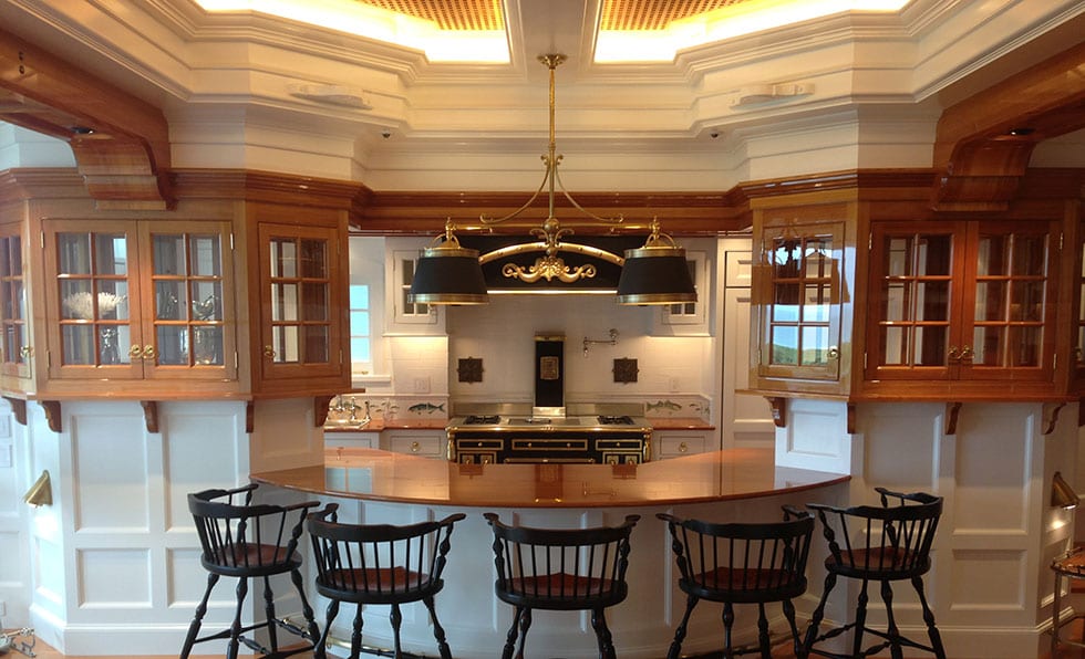 “We wanted it to resemble a fine marine museum with a Jules Verne feel,” Gatch explains. “My idea was to create a fine yacht interior of yesteryear—more like a stateroom in a steam ship.”