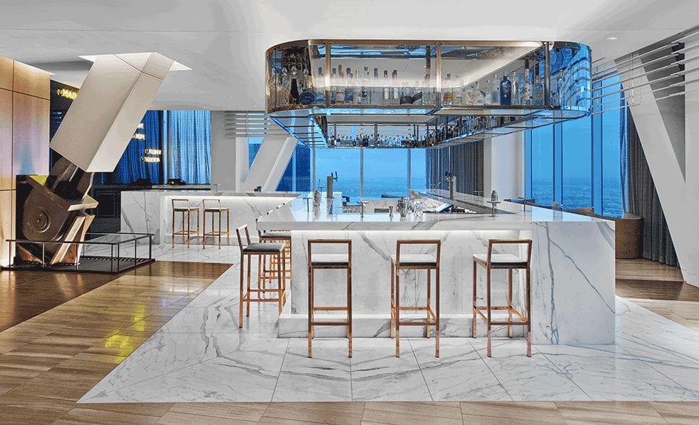 A custom ceiling design at the arrival resembles the curvilinear infrastructure of the city’s freeways and a 20-foot-tall handprinted mural showcases Los Angeles landmarks.