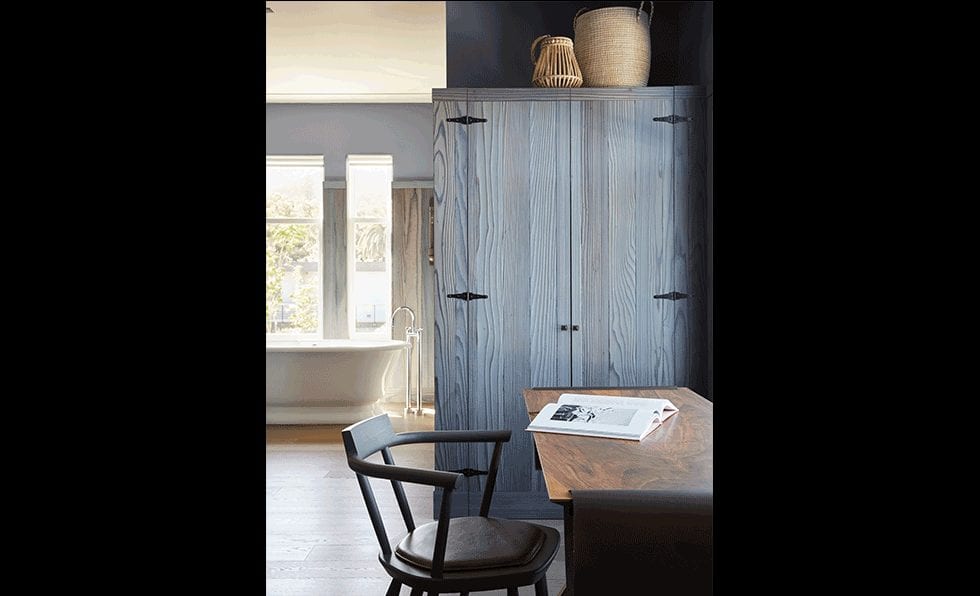 Linen upholstered headboards juxtapose dark wood paneling in the cozy guestrooms, while a freestanding tub is set by the windows for heady Napa Valley views.