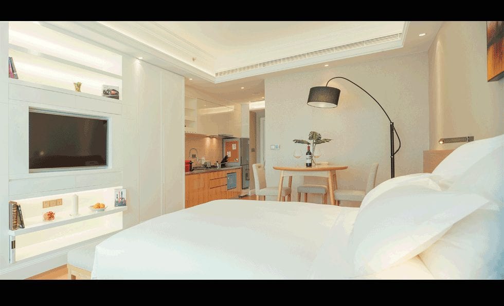A bright and airy LYCS Architecture-crafted serviced apartment in the Residence G Shenzhen.