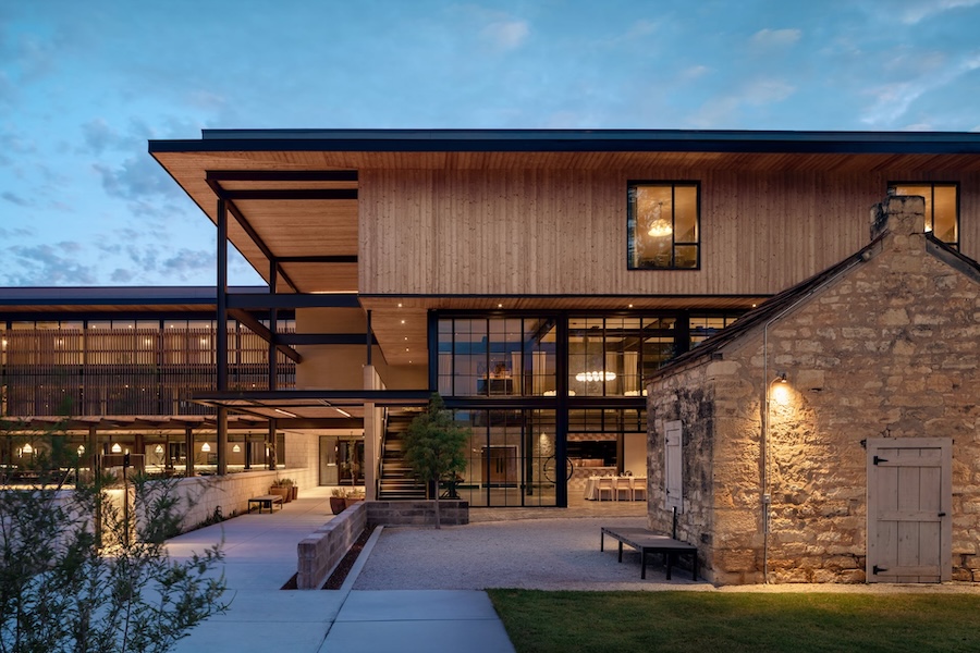 “We’ve created a place that honors the legacy of the Keidel family while offering a peaceful, sophisticated retreat,” adds George Wilcox, director of project delivery at Clayton Korte. “The material choices, careful placement of the new hotel behind the historic buildings, and the connection to the landscape all reflect the spirit of the Texas Hill Country.”