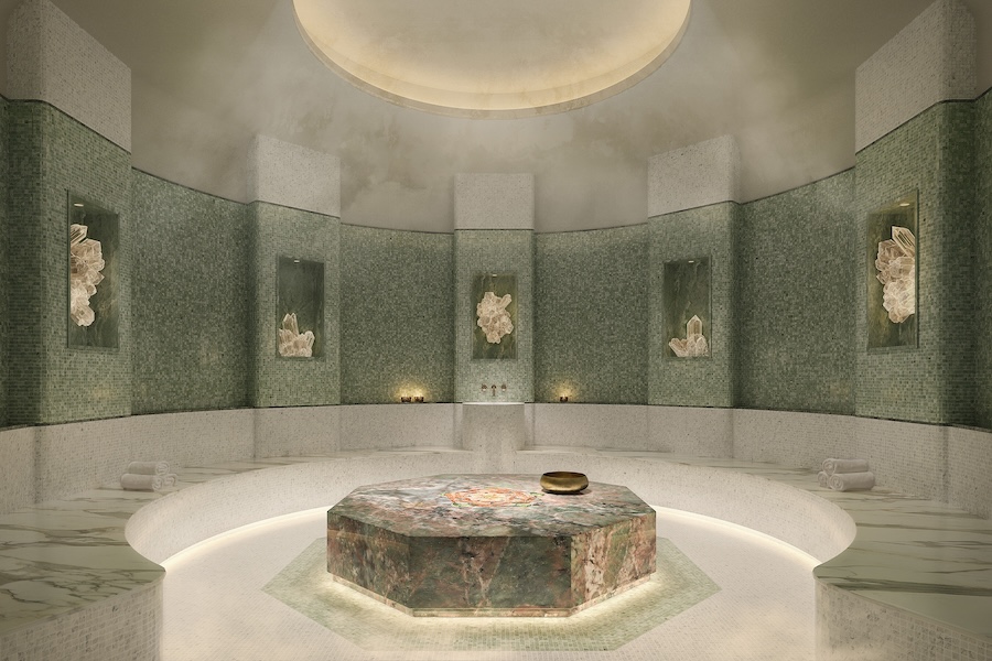 Beyond the Faena Rose levels, Faena Residences Miami extends the project’s cultural and wellness ethos through a suite of experiences. At the podium, Tierra Santa Healing House introduces a deeply sensorial spa and longevity concept that offers hydrothermal rituals, botanical steam rooms infused with South American herbs, horizontal rain‑shower beds, cold plunge and red‑light therapy, and couples’ heated stone beds.
