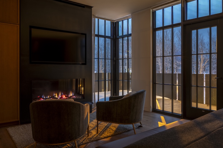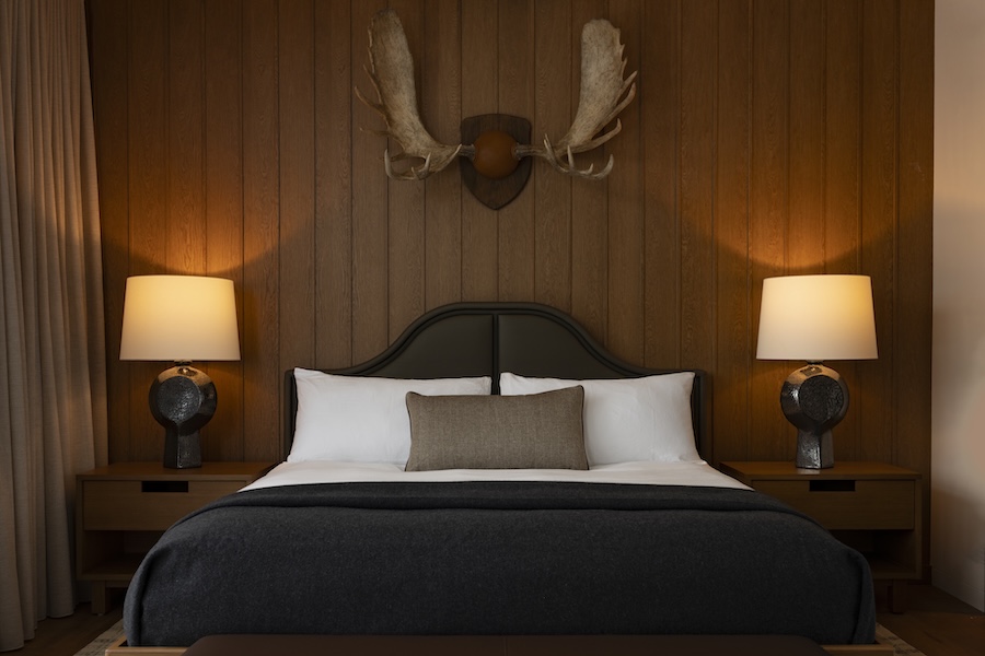 The interiors reflect a modern Alpine sensibility, layering custom furnishings with tactile materials and detailing. Throughout the hotel, guests encounter a thoughtfully curated art collection featuring works by David Yarrow, Sam Reveles, Kate Hunt, and Theodore Waddell, alongside original works by local Whitefish artist Madeline Boyle in each guestroom.