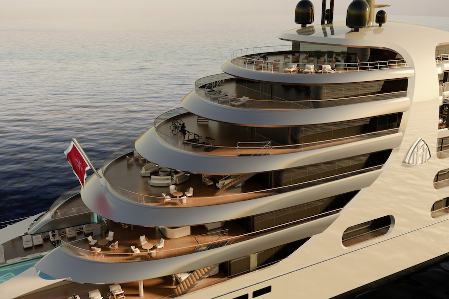The inaugural vessel, Beyond Horizons, is a 508-foot ultra-luxury superyacht designed around the concept of barefoot luxury. The ship features 30 generously scaled suites—each accommodation spans nearly 800 square feet and includes a private balcony—along with six additional junior suites.