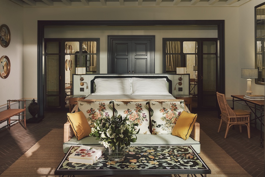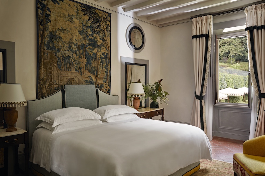 A trio of new signature suites anchor the redesign. The Limonaia Suite, located in the former orangery, evokes the charm of a private Fiesole villa with an eclectic collection of art, personal library, and private garden with a heated plunge pool.
