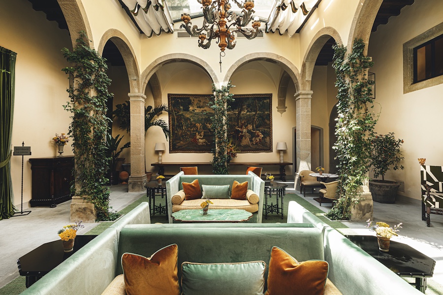 The renovation preserves the villa’s Michelangelo-inspired façade, arched terrace, and original chapel, cloister, and loggias, while unveiling 39 redesigned rooms and suites layered with hand-finished details and rare artifacts.