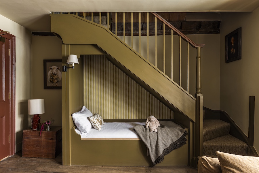 “As a design studio, we wanted to create a stronger sense of place, celebrating the inherent charm and natural patina of the building whilst layering in modern crafted pieces, pattern, and texture,” says Jill Higgins, founder of StudioJill. “Our approach unifies the old with the new to create a more holistic guest experience, mixing playful details with a relaxed, understated sense of luxury.”