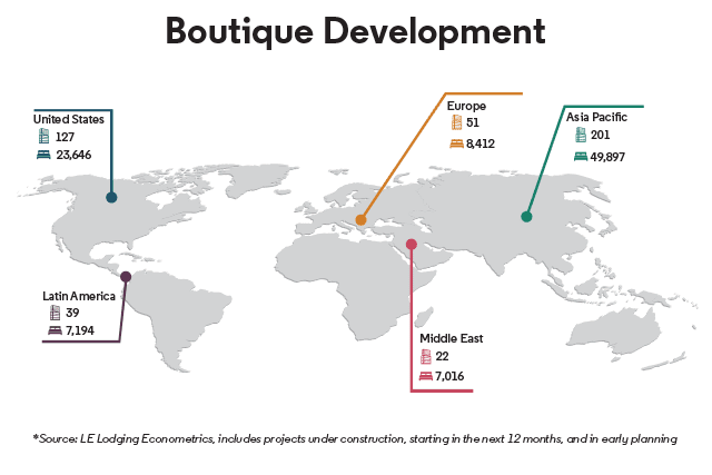 The hotel industry forecast is positive going into 2018 with projects up 9 percent in comparison to last year, according to Lodging Econometrics. “New supply growth in the U.S. is up 2.5 percent; Asia Pacific will have record openings; the Middle East has seen impressive pipeline growth year over year; and all the announcements in China over the last five years are beginning to open,” says the firm’s senior vice president of global business development Bruce Ford. “Openings will be larger in 2018 than 2017 in every region.” China and the U.S. collectively make up 60 percent of the global pipeline (with Guangzhou and New York leading the way), but Dubai and Seoul remain top cities to keep an eye on. Despite economic uncertainty, tumultuous geopolitics, and natural disasters, upscale and upper midscale segments continue to lead the market in an effort to offer a more authentic travel experience for today’s discerning guests.