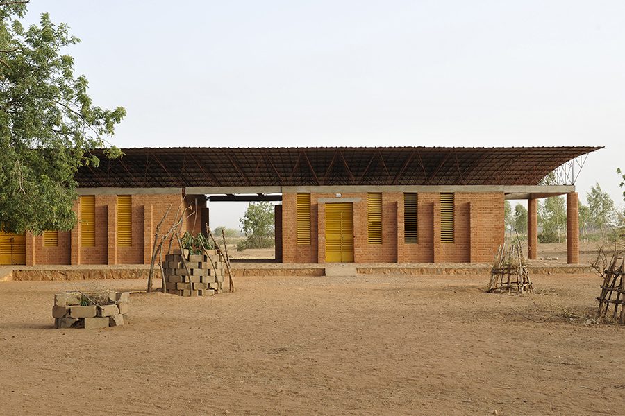 Kéré established the Kéré Foundation in 1998 to serve inhabitants of his native Gando, while projects like the Gando Primary School in 2001 served as a wellspring for the community and redeeming social equity. Through international fundraising, the school was constructed with indigenous clay fortified with cement to form bricks with bioclimatic thermal to retain cool air inside and allow heat to escape. Overhanging elevated roofing also supports natural ventilation efforts and is among Kéré’s many design signatures (alongside poetic expressions of light that characterize projects like the Benga Riverside School in Mozambique and the Centre for Health and Social Welfare in Laongo, Burkina Faso).