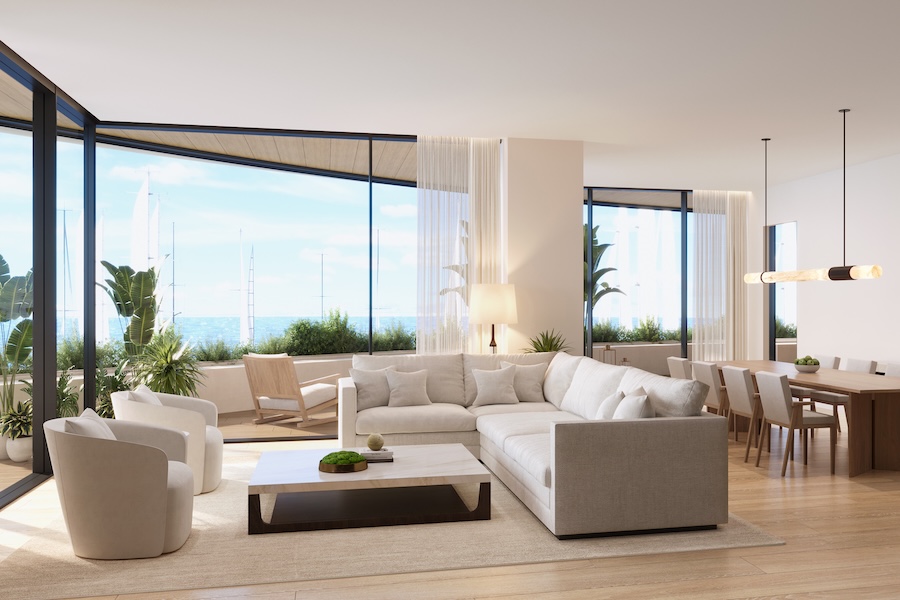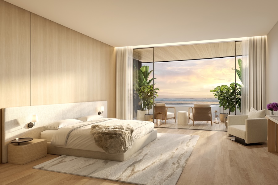 Spanning between 1,450 and 3,770 square feet, the two- to four-bedroom residences embrace natural light and fluid spatial connections, with open layouts and indoor-outdoor transitions. Matte plaster walls, linen drapery, and hand-troweled finishes are paired with sleek bronze accents, striking a balance between organic warmth and contemporary precision.