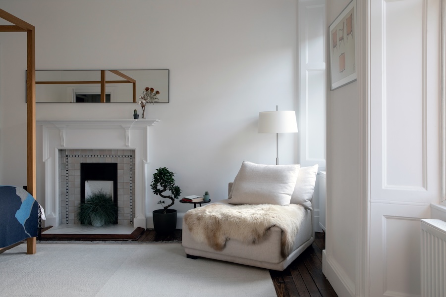 Layers of paint were painstakingly removed to celebrate the original features, while ceiling cornicing in the main reception rooms and wooden flooring throughout the house were fully restored. Notably, a damaged handrail was repaired using wood sourced from an antique church pew of the same era.