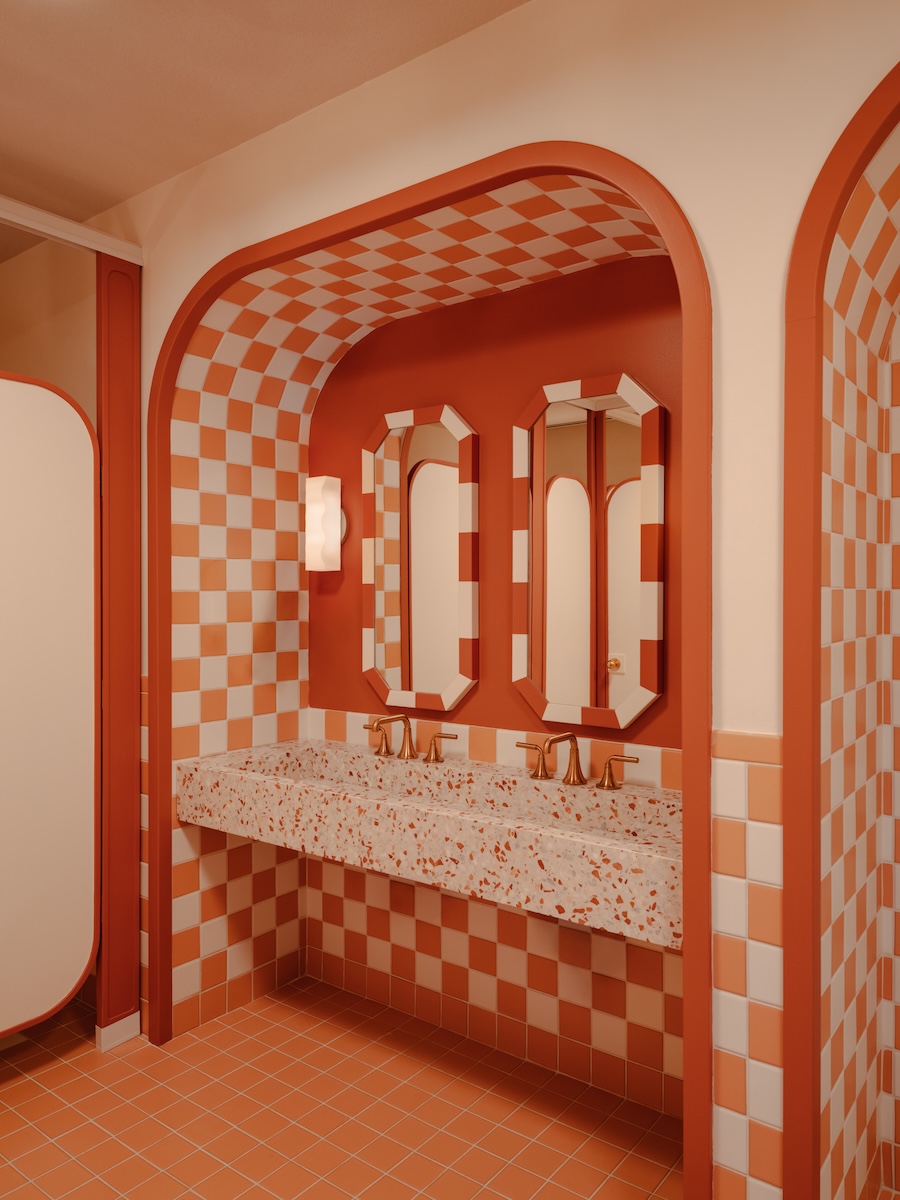 Custom artwork also plays a central role in shaping the identity of the space. Murals by local artist Kimmy Quillin, a longtime collaborator of Home Studios, appear throughout the restaurant. Her expressive compositions introduce moments of narrative, levity, and humor, bringing movement and color to the walls.