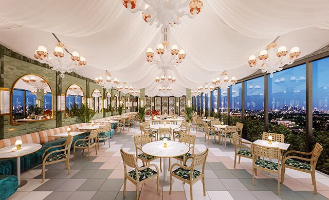 Merois crorwns the Pendry West Hollywood as a dazzling open-air venue overlooking Sunset Boulevard. Mirrors will adorn the ceramic tile-clad walls to further elongate the dining room. Meanwhile, located on the corner of Sunset Boulevard and Olive Drive, Ospero evokes the qualities of a casual European sidewalk café. In response to Ospero’s Italian-centric fare, the design will unite its indoor and alfresco spaces, including an outdoor terrace that overlooks a landscaped piazza that frames views of Los Angeles.