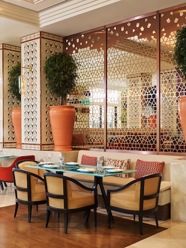Conran & Partners conceptualized the interiors as a stage for the region’s rich culinary history. The spatial journey begins at the entrance, where guests are welcomed by folding screens adorned with dervish figures.