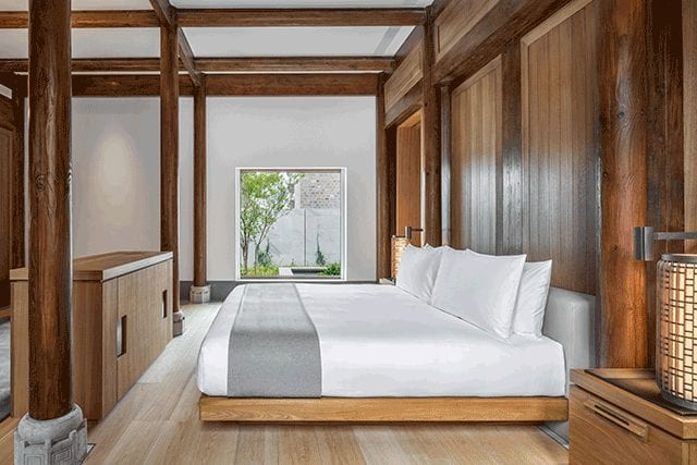 In addition to the villas, 24 expansive and sundrenched Ming Courtyard suites will be appointed with refined wooden interiors and the Aman brand’s signature Asian-influenced minimalism. Each 700-square-foot accommodation will pay homage to the classic structure of the Chinese courtyard home with two spacious private courtyards attached to each one.