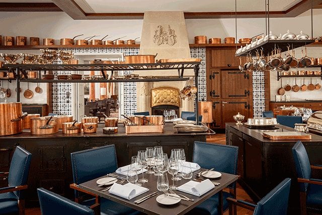 The Palace Hotel’s original wooden structure from 1904 was overhauled for a new exterior. A contemporary aesthetic will characterize guestrooms, complete with soft ivory and beige tones and oak-lined walls and floors for warmth. All 108 spacious guestrooms and suites will feature floor-to-ceiling windows and range in size from 312 to 419 square feet. The onsite restaurant Ritzcoffier will offer a 19th century-style French kitchen, complete with a fireplace from the late 1800s. Blue and white tiles will adorn the walls along with more than 100 copper pots. The Salle Palace and its foyer will provide an additional 3,552 square feet of event space.
