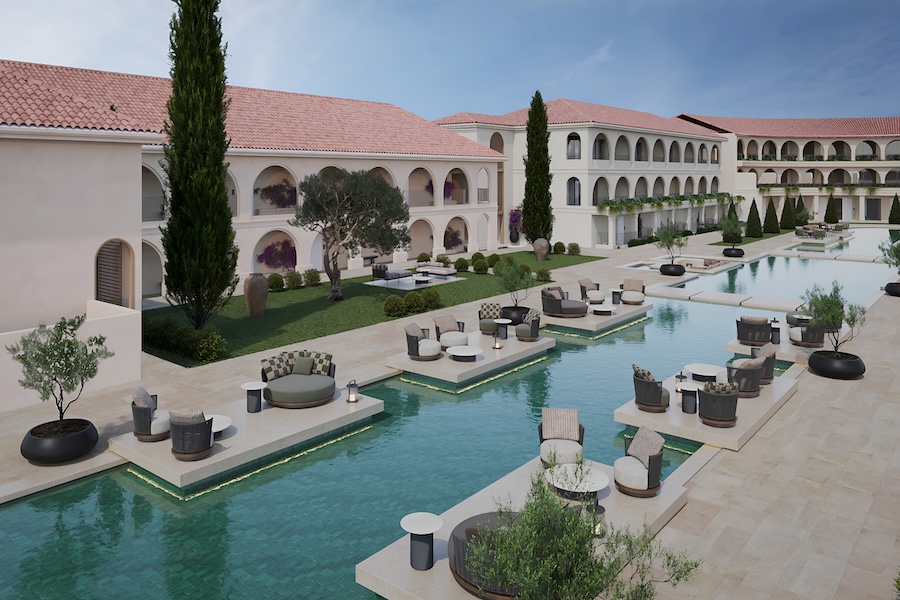 Managed by Numo Hotels & Resorts, Conrad Corfu is conceived as a low-slung resort anchored by an Aqua Piazza lagoon, landscaped gardens, and a mix of indoor and outdoor heated pools. Additional amenities will include three restaurants, two bars, an extensive wellness center, open-air cinema, and a kids’ club developed in collaboration with Worldwide Kids, featuring a treehouse-inspired micro village nestled among olive trees and eucalyptus.
