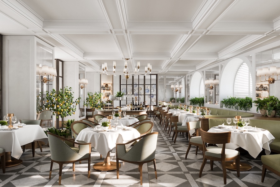The hotel’s culinary experience is led by chef Carlo Cracco, marking his first restaurant venture in Rome. Ocra Bar channels the warm hues of Roman sunsets for cocktails and light fare, while Viride serves contemporary Italian cuisine inspired by gardens and seasonality. Piazzetta, meanwhile, animates the property’s internal courtyard with all-day dining rooted in traditional Roman dishes.
