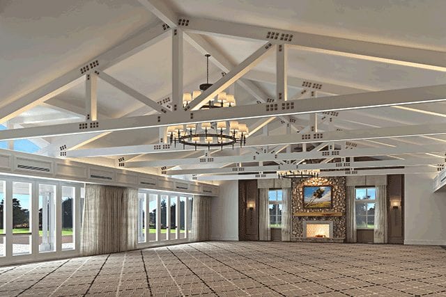The indoor-outdoor meeting facility will feature a variety of spaces, with the 2,500-square-foot Fairway One Meeting Room at its center overlooking the golf course’s first green. Additional venues will include a 700-square-foot board room, a 1,000-square-foot living room, and the 2,250-square-foot terrace patio. Local artwork, natural materials, and tactile finishes will characterize the venue.