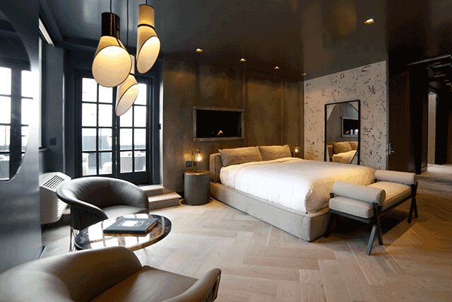 that sophistication,” says Jónsdóttir. “My vision was to create a pied-à-terre where guests are swept into a world of sensual design that begs for champagne all day.”