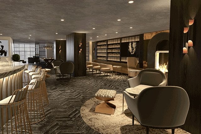 Upon arrival, guests are welcomed by a soaring atrium clad with glass and black iron lattice, which will contrast the hotel’s Roaring Twenties-style décor with modern, locally informed elements. Dramatic high ceilings, black cage chandeliers, and a fireplace reflect architectural patterns of the original design, while a large illuminated sculpture installed above the bar injects a contemporary statement. The energetic atmosphere will promote creativity and collaboration with the appointment of private event spaces, including the three-story, brick-clad ballroom, which spans 2,117 square feet and features a large, ornate chandelier. Two boardrooms and the mezzanine will serve as alternative meeting venues. Several bar options, including the large, double-sided cocktail bar, intimate library, and a podcast studio will arrive as well.