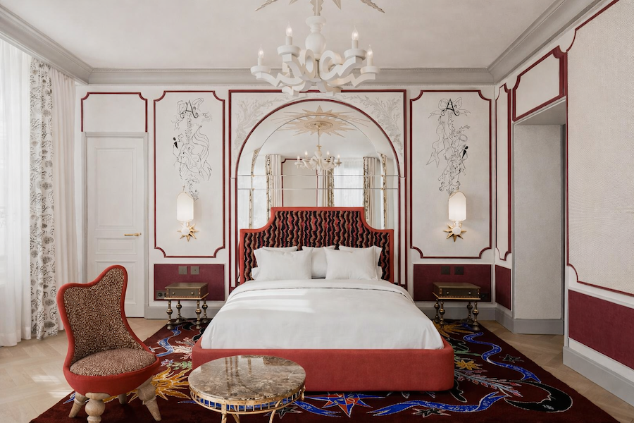 The project also expands with the opening of Hotel L’Aventure. The 15-room boutique hotel is designed by Vincent Darré, whose approach brings a surreal, highly expressive lens to Parisian hospitality.