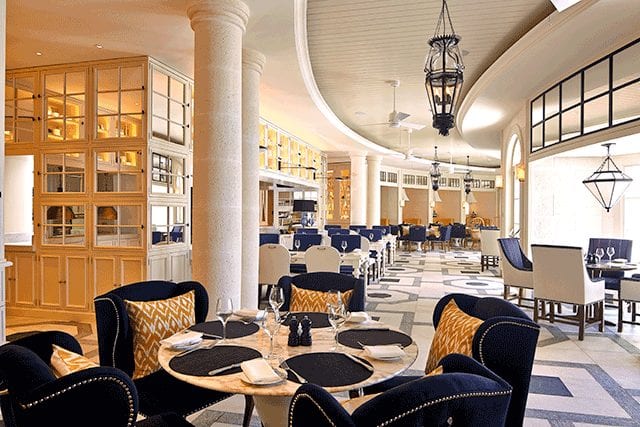 The property spans 26 colonial-style suites as well as six four-bedroom Lagoon Villas, all of which boast views of Godhal Beach and the Atlantic Ocean. All 26 of the one- and two-bedroom suites feature luxe fabrics, rich wood furnishings, marble floors, spacious en-suite marble bathrooms, separate bathtubs and showers, and walk-in closets. Each ground-floor suite includes a private garden just steps from the beach, while rooms on the next level feature expansive, fully furnished balconies. Four two-bedroom penthouse suites are equipped with matching bedrooms, master baths, and walk-in closets, while two one-bedroom, residential-style penthouse suites boast a grand foyer, living area, ocean-facing bedrooms, a dining room outfitted with a wine tower, and a designer kitchenette.