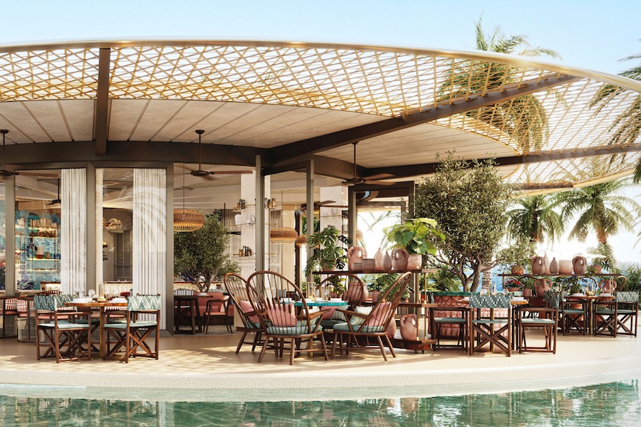 Wellness and leisure offerings will include a luxury spa, fitness center, and a Children’s Club, alongside four dining venues: Horizon Bar, Nammos Restaurant, Nalu, and Omnia.