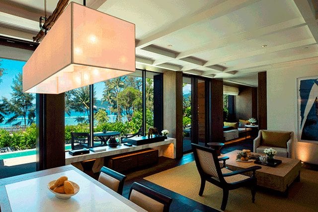 The resort is home to 71 pool pavilions and villas, with residential-style guestrooms that reflect a blend of Eastern and Western influences as well as contemporary and traditional elements. Expansive garden terraces immerse visitors in the tropical setting with outdoor seating, daybeds, infinity pools, and views of the Andaman Sea. Spanning 8,570 square feet, the Ocean House is outfitted with a master bedroom, twin bedroom, separate living and dining rooms, and garden courtyards.