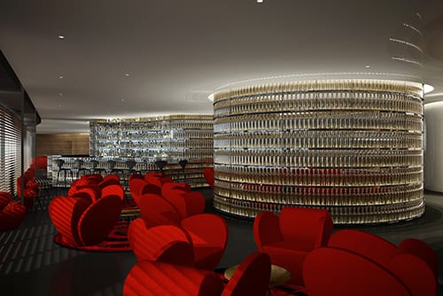 “We have tried to enhance Moretti’s original curves using our own, while at the same time influencing the anticipated flow of people through the spaces,” says designer Ron Arad. “To honor Moretti, we introduced a brilliant Italian fabricator to the project as a way of completing the cycle.”