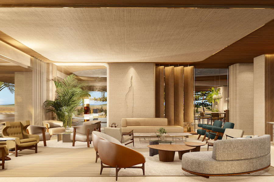 The interiors will showcase a curated selection of Brazilian design and contemporary art, with sculptural pieces and distinctive furniture complemented by works from Artur Lescher, panels by Heloisa Crocco, paintings by Teodoro Dias, and a selection of Brazilian photography.