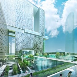 Architects Skidmore, Owings and Merrill will produce a design that incorporates water terraces, bamboo groves, and canals. Guests will have access to numerous food and beverage outlets, as well as a banquet and conference center.
