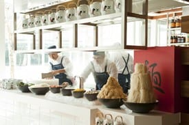 The hotel’s F&B concepts are integrated into a three-in-one designer showcase developed by design consultancy Stickman Tribe. The COOK, which is the main a la carte restaurant with 11 live show kitchens and a gourmet deli, showcases a bold mix of traditional and modern materials and finishes, such as handwritten menus on rustic wooden blackboards, Corian marble countertops mixed with rustic crate-stamped timber drop ceilings, and custom-designed tiles.