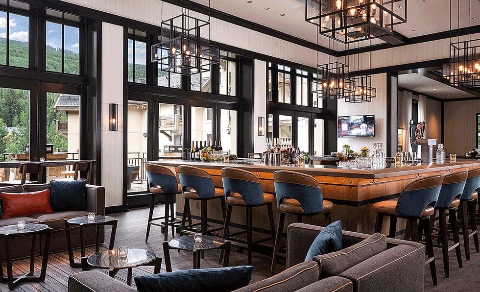 Reimagined by New York’s Meyer Davis Studio, the Remedy Bar at the Four Seasons Resort and Residences Vail in Colorado features a mix of marble with walnut wood and saddle leather highlighted by industrial metal accents.