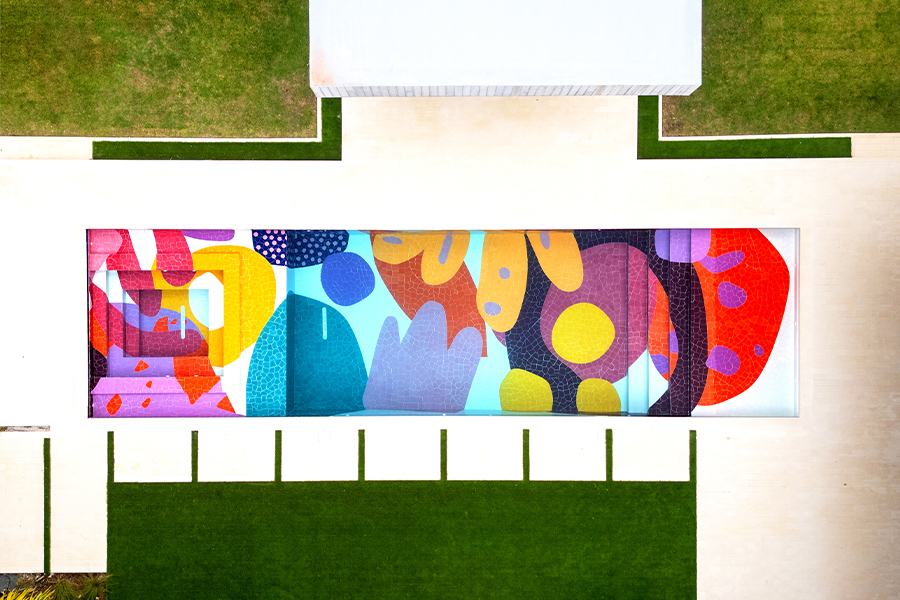 In collaboration with Ceramica Suro, more than 8,000 tiles comprise a custom pool