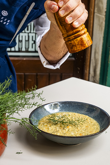 In 2000, with these fresh learning experiences in mind, he moved to Ragusa, Sicily, one of the island’s main cities, and opened Duomo Ristorante, where his process evolved again into what he calls “culinary anthropology,” or the concept of gradually deepening, betraying, and adding to a dish while rethinking its history so he can cook it for the present and the future. The past also proves as his inspiration, as thousands of years of the island changing ownership made diverse flavors and recipes mainstays for its inhabitants.