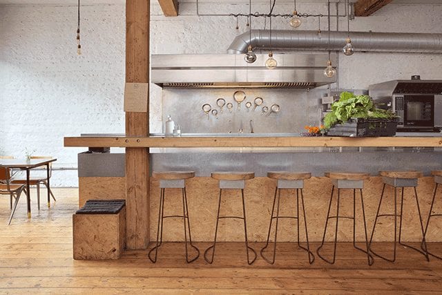 Housed in the ground floor of a warehouse in Brighton, UK, local firm Baines & Fricker designed McMaster’s Silo, the first zero-waste management restaurant in the area, as a raw space with repurposed office floor insulation used to make tables and bench seating.