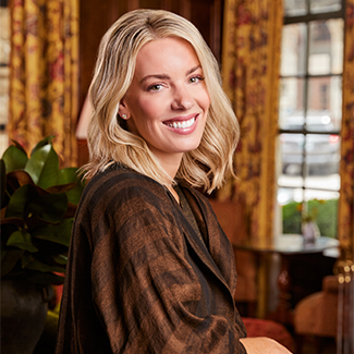 That sense of groundedness extends to Cliff House. The heart of Prospect, it comprises a retail shop, lounge, and restaurant by Mezze Hospitality. “I want it to be anchored in the community,” she says. Perched on a bluff with sweeping lake views, the original structure was rebuilt from its American chestnut frame. Inside, cedar-clad walls are warmed by Murano glass pendants, brass detailing, a ceiling mural, and pale pistachio walls.