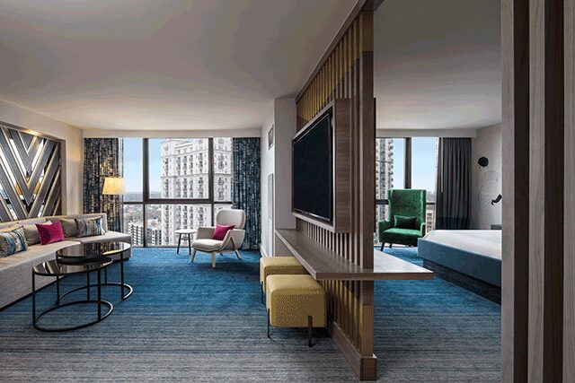 While she had clients in hospitality, most of Li’s revenue came from multi-unit housing, but the 2008 recession took a heavy toll. Undeterred, Li leaned into hospitality, ultimately producing lines of casegoods, sliding doors, and custom upholstered pieces for luxe hotels across the globe. “There have been growing pains, but we’ve maintained the quality of our product, our service, and scheduling, which is extremely important in this industry,” Li says. Now, her pieces are found in the likes of the hotel Cosmopolitan of Las Vegas and the JW Marriott Denver Cherry Creek.