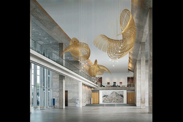 That’s an understatement: Under her designer-first leadership as the U.S. CEO, Yellow Goat Design has created bespoke lighting and over-the-top installations for major brands such as Aloft, Four Seasons, and Swissôtel, collaborating with the likes of Stephen B. Jacobs Group, HKS, and Contour Interior Design, to name a few. “Our designs are telling a story, whether it be their brand identity or the history and location of the space,” Schuster says.
