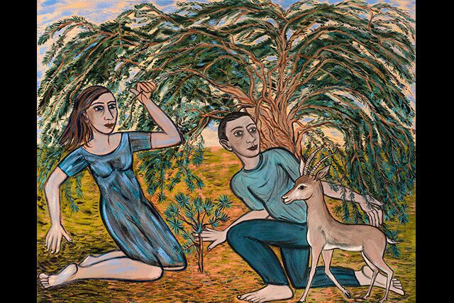 Meanwhile, back at the Whitby, her Dancing in Solitude lights up a monumental space in the bar outside the screening room, its palette of blue, honey, peach, and ochre drawing particular attention to the female form of a dancing pair. “Kit still surprises me in terms of what she’ll pick when she comes to the studio,” Cooper adds, “but she always allows artists to be true to themselves, to their own roots.”