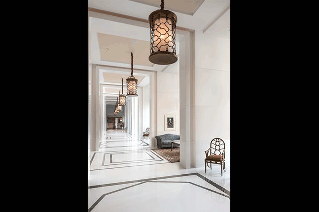 For example, guests now arrive through a grand, double-height, marble-clad passageway with windows facing the garden. “The initial perspective is shifted, but there is a strong sense of familiarity and identity that solidifies the timelessness of [the hotel],” says the founder and principal of New York-based Tihany Design. Additionally, a new gate designed by local artist group Kaaru—as an ode to the disparate interpretations of time—provides a visual focal point at the entrance.