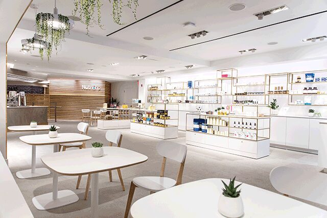 As a wellness blogger and natural foods chef with a cult following, Lily Kunin took her talents off the webpage, out of the kitchen, and into a brick-and-mortar in New York last September. What manifested was Clean Market, a diverse wellness outpost that aims to promote complete wellbeing. “Our customer is anyone who is looking to invest in their health and feel good in their body,” says Kunin, who still maintains the Clean Food Dirty City website with clean-eating recipes that she personally concocts paired with beautiful photographs. “I wanted this space to be a trusted resource for the best products and services, while providing an oasis from the hustle and bustle of the city.” Ironically, Kunin’s Clean Market is located right in the middle of said hustle and bustle, on East 54th Street in Midtown Manhattan. Thanks to a calming and decidedly minimalistic interior—designed by New York firms Heitler Houstoun Architects and Homepolish—the wellness hub is a tranquil refuge for the weary. The space and its diverse range of offerings are meant to be traversed like a modern, choose your own adventure—one that is completely on-brand to Kunin’s all-natural lifestyle. “Whether you are stopping in for a matcha and superfood salad from our grab-and-go, restocking pantry and supplement staples, or you make an afternoon of it and relax in our thermotherapies lounge while sipping a latte—here, all things wellness are under one roof,” she says. “That is something I have never seen before.”