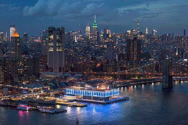 The rooftop at Pier 17 designed by Rockwell Group doubles as a local hangout and concert venue in Lower Manhattan