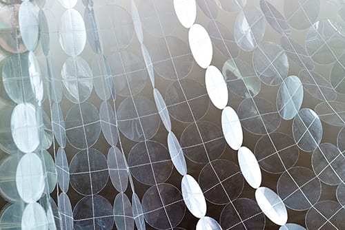 Lori Weitzner has developed a transparent polyester and filament ultra-sheer that is hand-stitched to form drapery panels. In the field of fabric design, that is truly some innovative thinking.