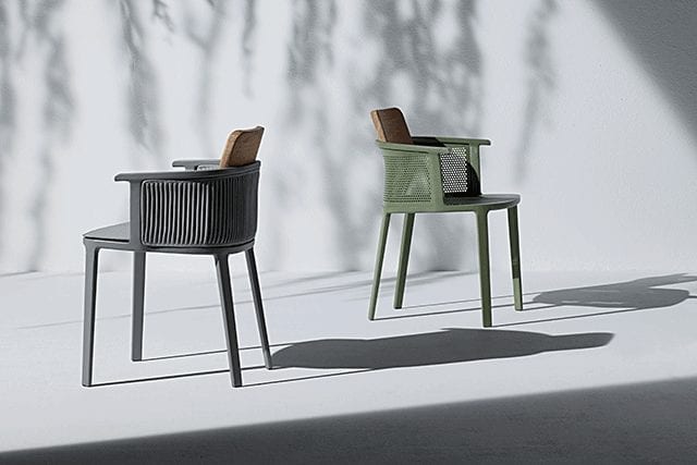 In 2016, he partnered with Ethimo for the playful and feminine Nicolette chair, and oversaw Alias’ Gran Kobi line of seating, which recently expanded into outdoor products. This year saw the launch of Kristalia’s Tuile armchair and sofa, where a wraparound back and upholstered seat are supported by a metal base. Meanwhile, the evocative Fox chair for Pedrali is as versatile as it is fashion-forward, and Arflex Japan’s Blanche and Bourg seating options are an exercise in extreme comfort.