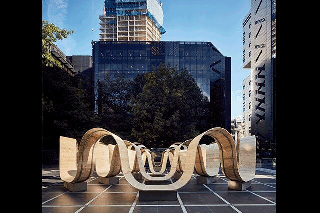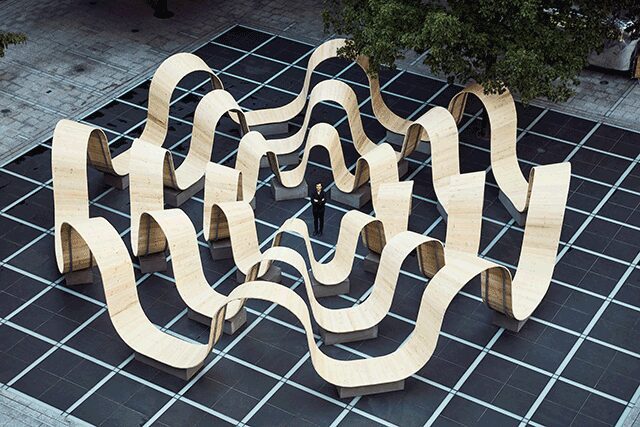 “It was designed as a rippling wave of wood rising up to form arches for people to walk through, with curves serving as spaces to sit, lie, and relax,” says Cocksedge of the landmark commission. “We wanted it to bring out a sense of joy and wonder in people, and that’s true for everything we do. Creative projects that spark people’s curiosity are the greatest reward.”