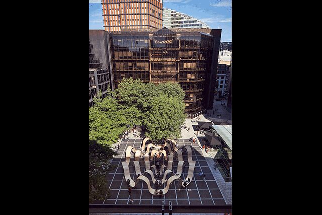 During this year’s London Design Festival, the outdoor Please Be Seated installation by locally based Paul Cocksedge graced Broadgate, the city’s largest pedestrian neighborhood. Encouraging visitors to find urban respite on the hectic Finsbury Avenue Square, it was crafted from 1,152 undulating scaffolding boards reimagined by Essex design firm White & White.