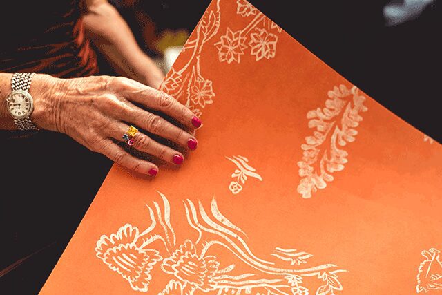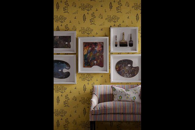 KK: You need a lot of texture within a background to give fabric its depth. They have the know-how to do this brilliantly. Before we began, I’d visited S Franses on Jermyn Street [in London] to see their historical tapestries and cartoons. I left fascinated by the large leaves and creatures. We’ve been inspired by a centuries-old tradition, but we’ve given it a new lease of life by making it look wholly contemporary. Our love of folk art comes through strongly.