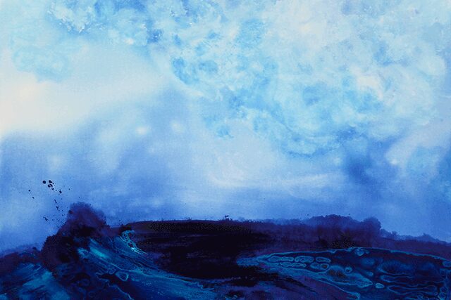 That connection has led to more opportunities. For instance, Sargasso Sea—an abstract painting resplendent in his signature dark blue with black tones—drew the attention of San Antonio-based company Rug Studio, which chose to print it onto a rug, creating a relationship that has lasted eight years.